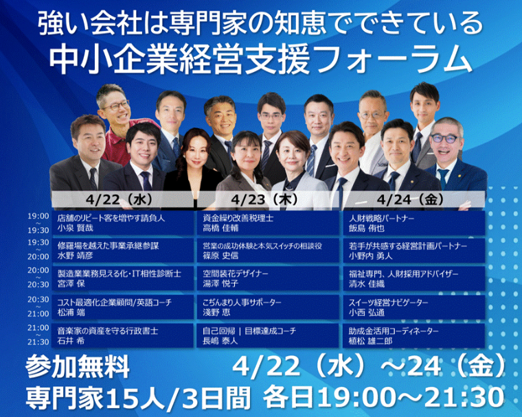 15名の専門家が、中小企業経営の必須テーマを語ります。